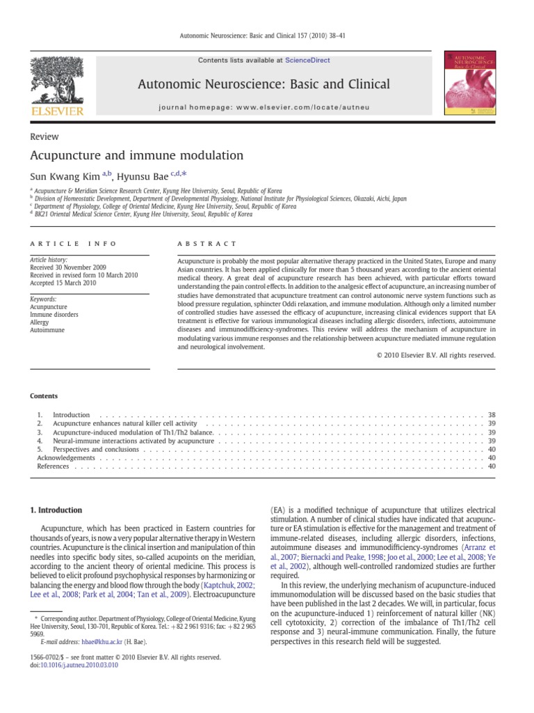 Acupuncture And Immune Modulation Kim E Bae 2010 T Helper Cell Medical - Medical entrance form (required) under 18 years of age only (if over 18, continue to page 2).